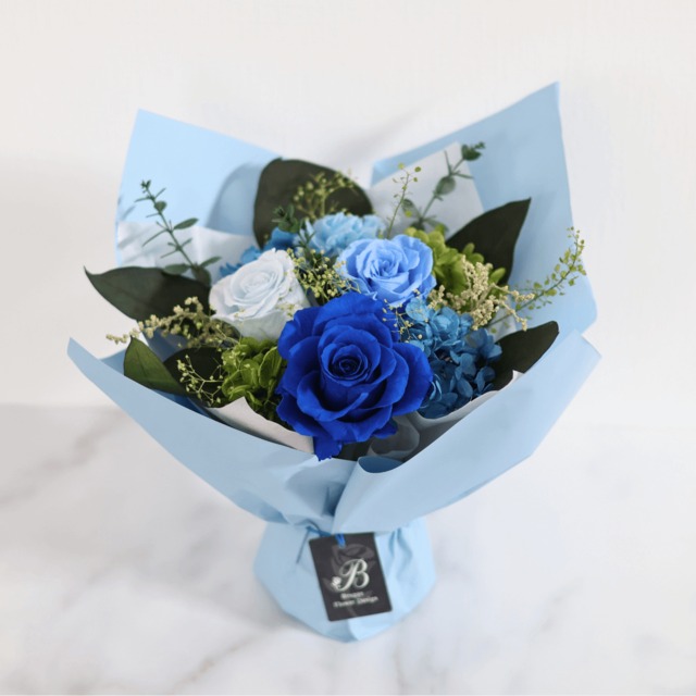 プリザーブドフラワー ギフト 花束 ブーケ おしゃれ バラ 青 プレゼント 枯れない花 記念日 プロポーズ 誕生日 還暦 退職 結婚祝 両親進呈 名入れ ケース 飾り方 クリスマス バレンタイン ホワイトデー 卒業 入学 成人式 母の日