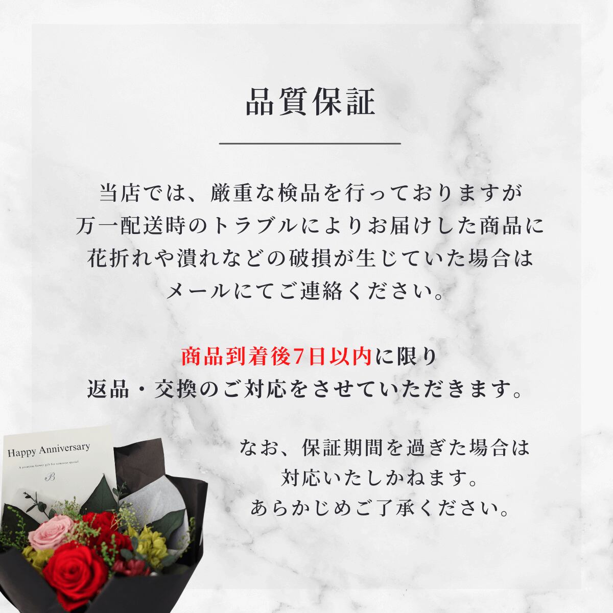 ・プリザーブドフラワーの取扱説明書つき